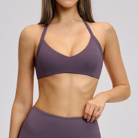 Custom Yoga bra|Wholesale Brushed halter neck sports bra with open back and beautiful yoga underwear